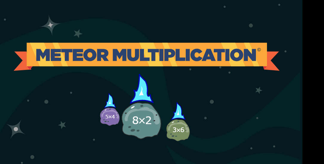 Meteor Multiplication is a math game that helps students with learning multiplication. Large meteors with multiplication problems move toward a space station in the center of the screen.